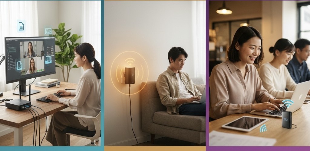 ポケットWi-Fiは、持ち運びできる小型ルーターで、外出先でも使えるのが特徴です。出張やカフェでの作業が多い人には便利ですが、在宅ワーク中心の人には少し不向きな場合もあります。