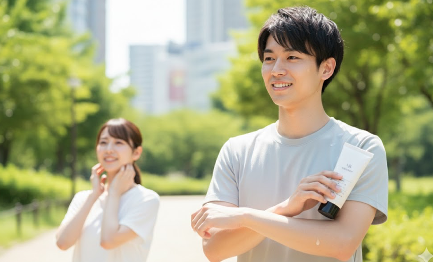 - 汗をかいた後やタオルで拭いた後は、こまめに塗り直しを行う。