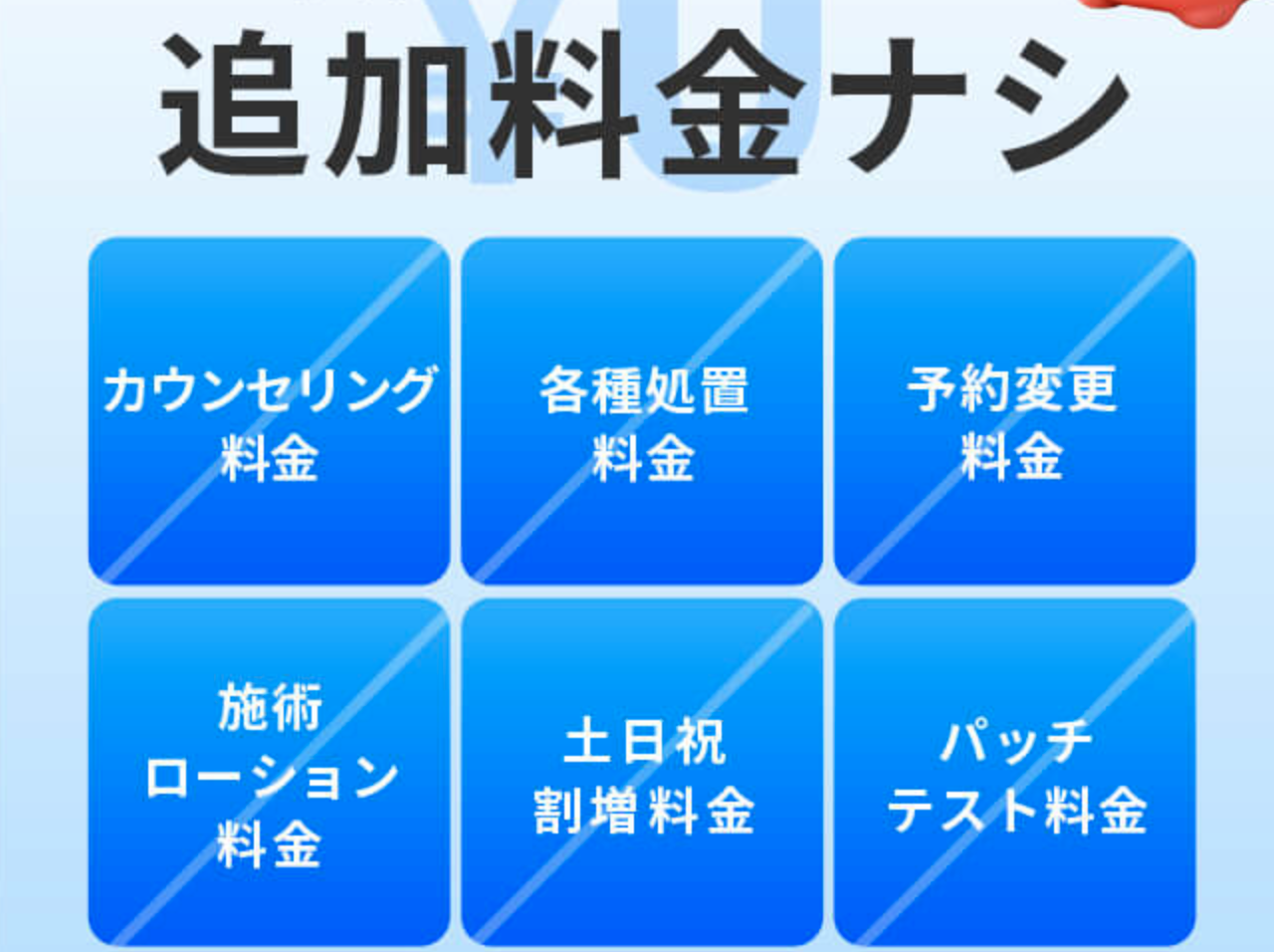 - わかりやすいカウンセリング:肌状態やライフスタイルを確認し、無理のない回数・頻度を提案。疑問点は事前に解消できます。