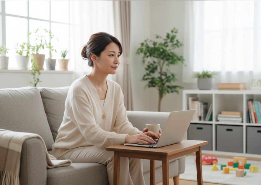 家事の合間やお子さんの昼寝時間など、まとまった時間が取りづらい方でも柔軟に取り組めます。