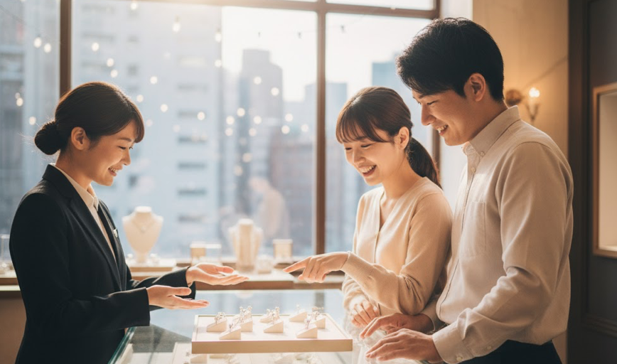 プロポーズの瞬間はしっかり演出しつつ、後悔のない指輪選びができます。