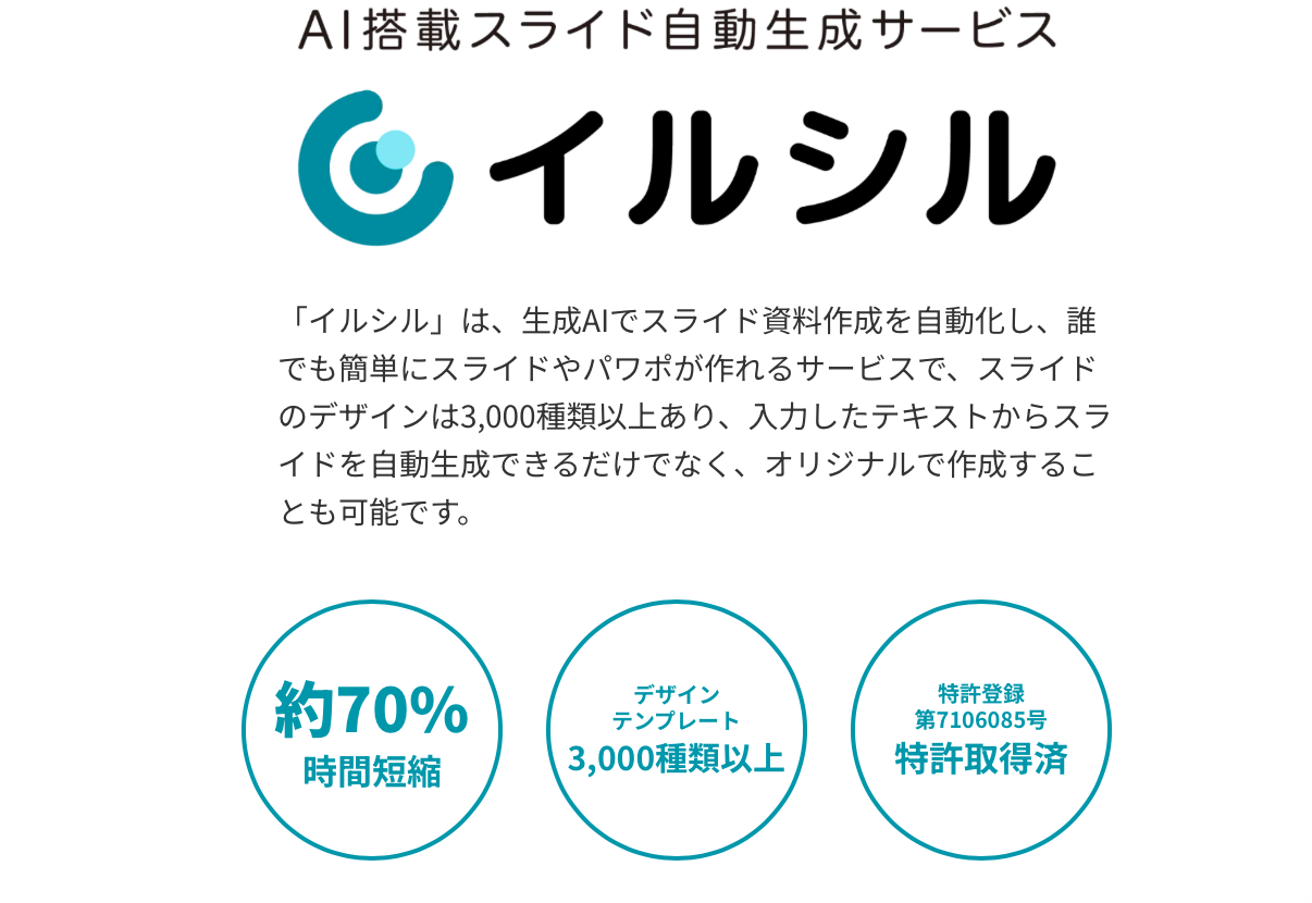 そこで注目されているのが、PC専用のAIスライド資料作成ツール「イルシル」です。