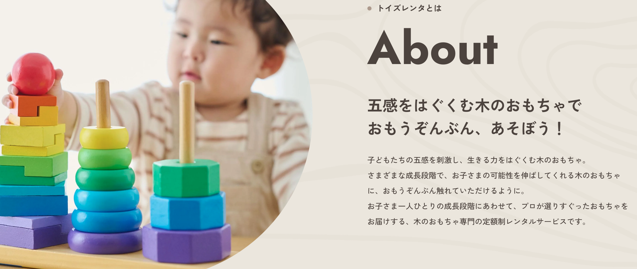 トイズレンタの最大の魅力は、知育の専門家や保育士が、月齢・発達段階に合わせて厳選した「木のおもちゃ」に特化している点です。