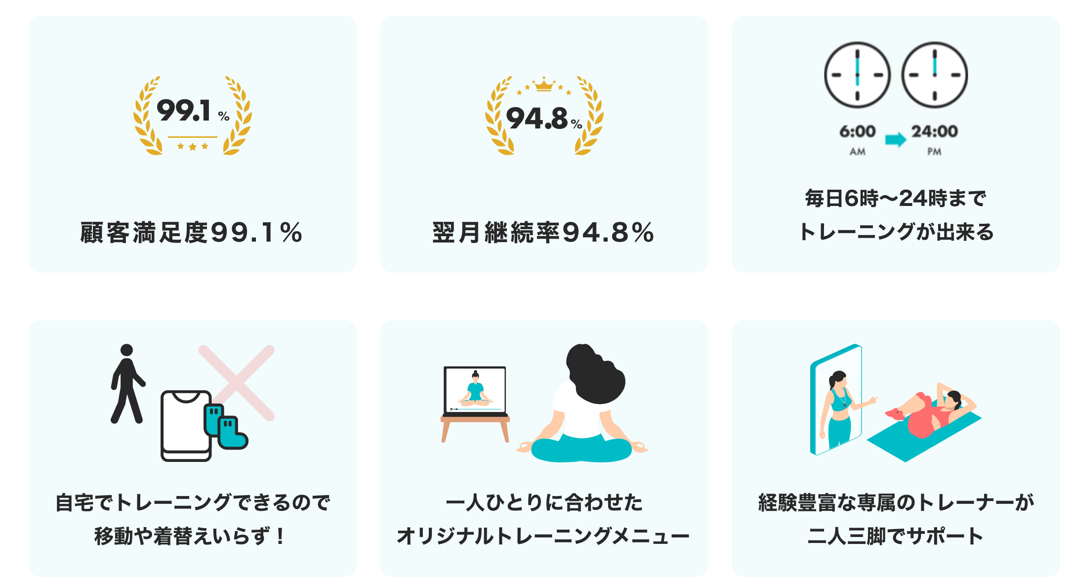 他のオンラインパーソナルサービスでは珍しい、充実の60分間無料体験が用意されています。まずはコストゼロで、プロの指導の質、ZENNAの続けやすさを体感してみてください。
