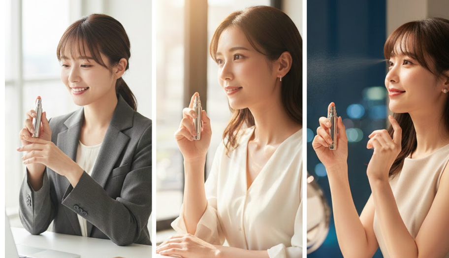 TPOに合わせて香りの「着替え」が楽しめる仕事用、休日用、デート用、そして季節の変わり目…。香りを複数持つことで、場面や気分に合わせたセルフプロデュースが可能に。あなたの印象を自由にコントロールできます。