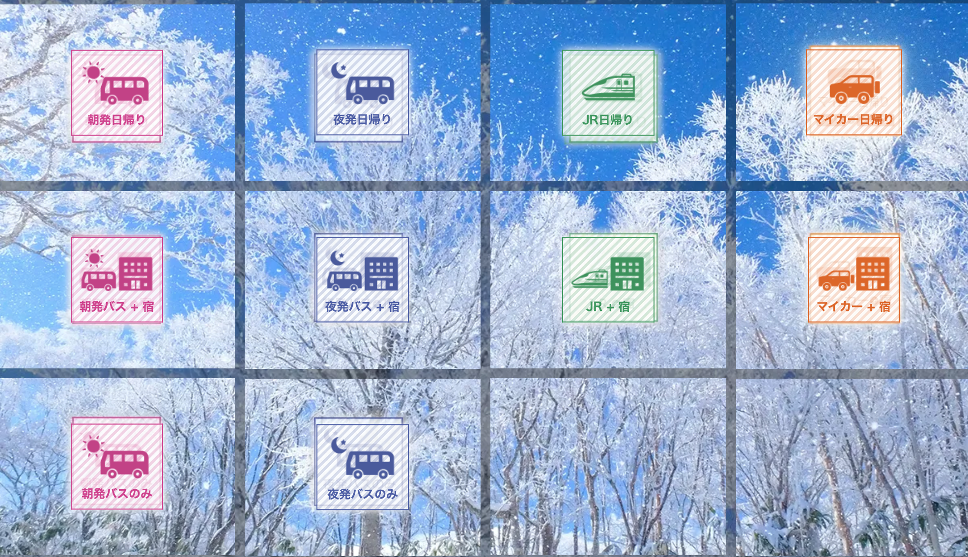 特に「夜発バス」を利用すれば、朝一番のパウダースノーを楽しむことができ、時間を有効活用できるのが最大の魅力です。