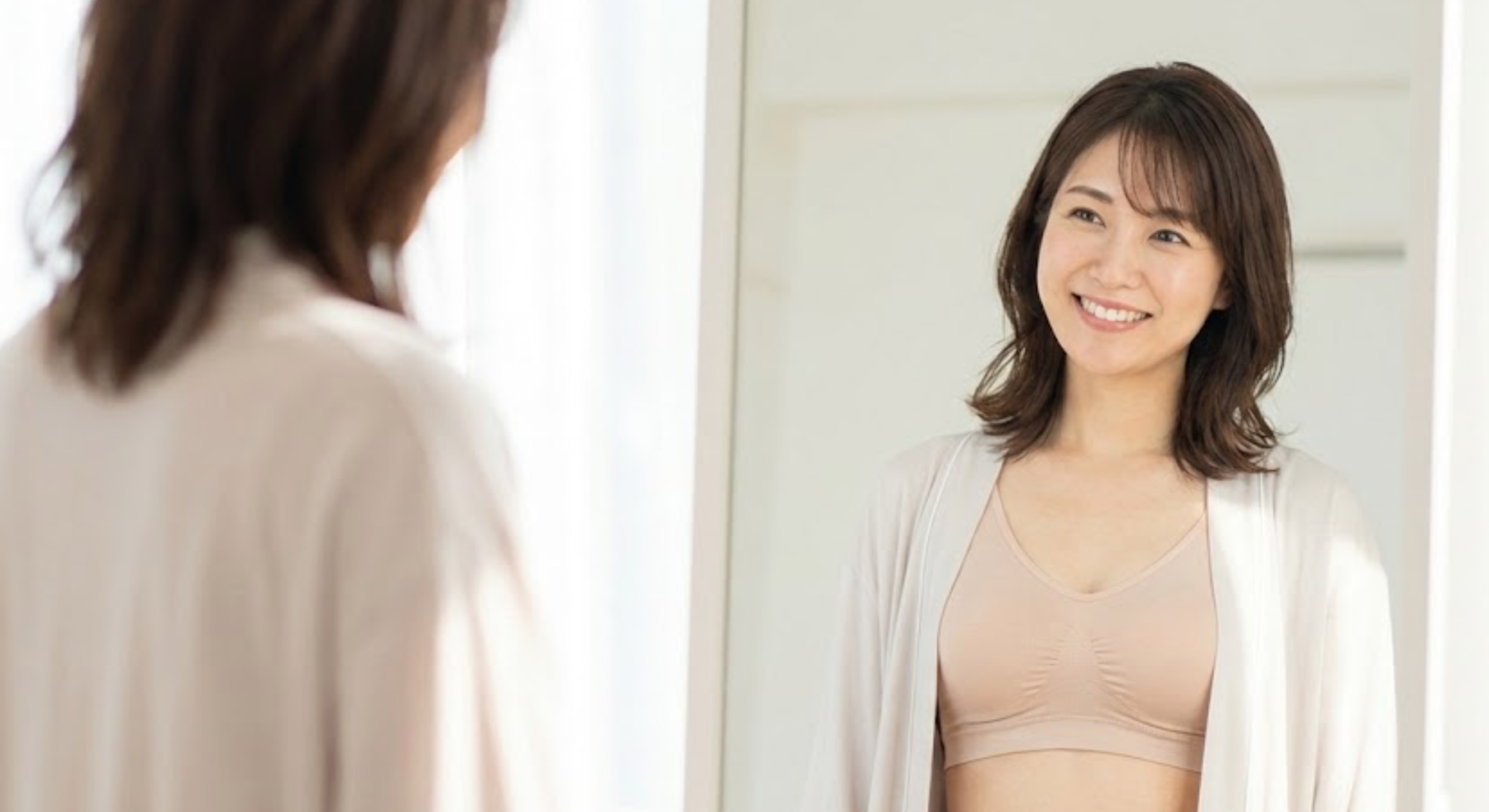 日中はワイヤーブラでなんとか形を整えていても、お風呂上がりやリラックスタイムに「素の状態」に戻ると、自信が持てなくなってしまう…。