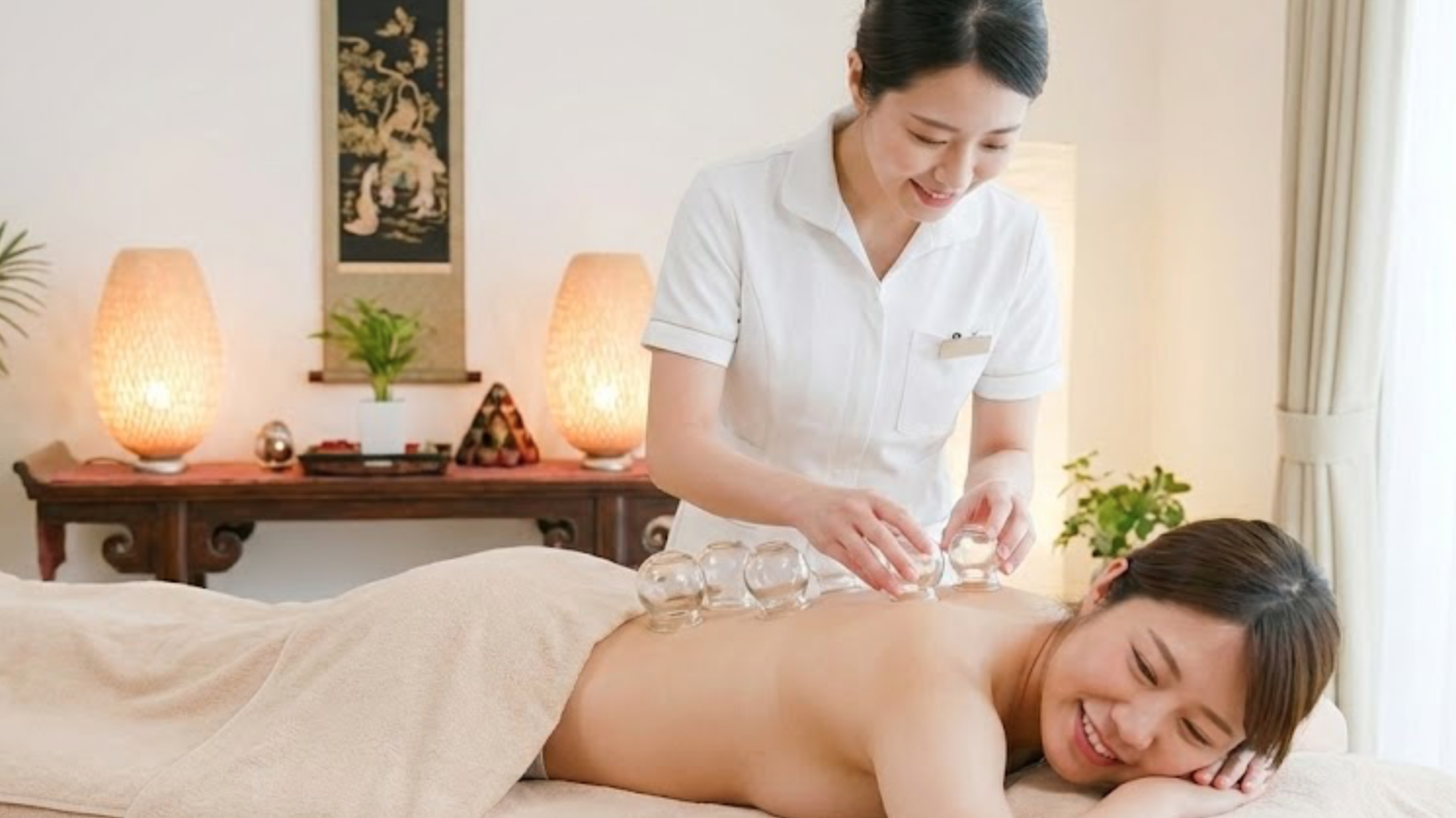 「カッピング」や「トリートメント」など、東洋美容の理論に基づいた施術で、滞りがちな体の巡りをケア。スッキリとした体感へ導きます。