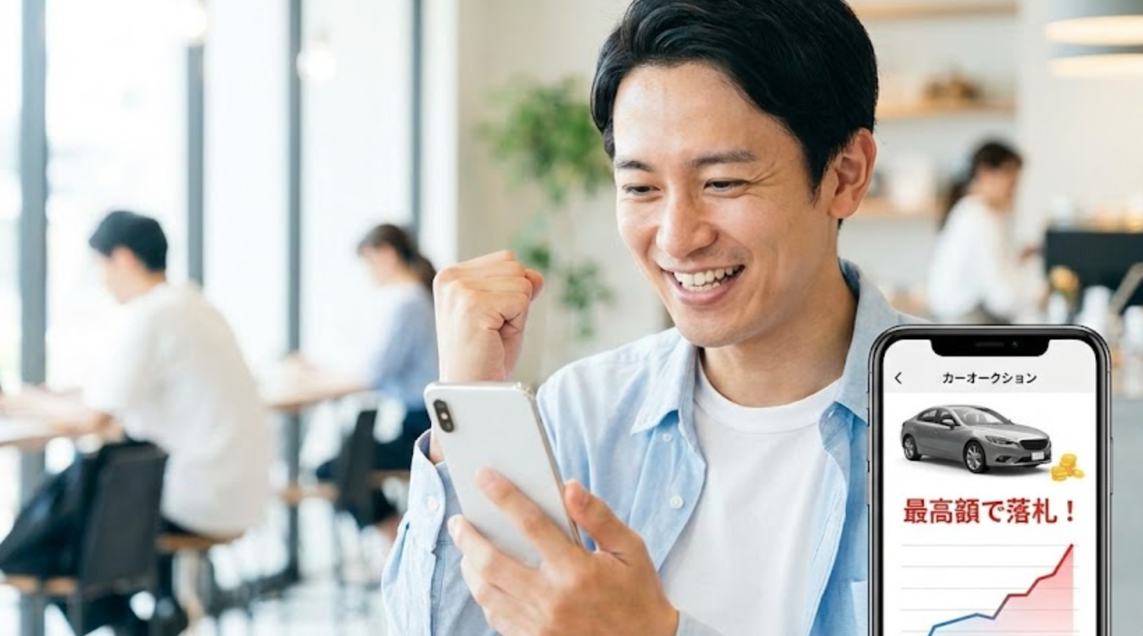 あなたはスマホで、自分の車の価格がどんどん上がっていく様子を見守るだけ。