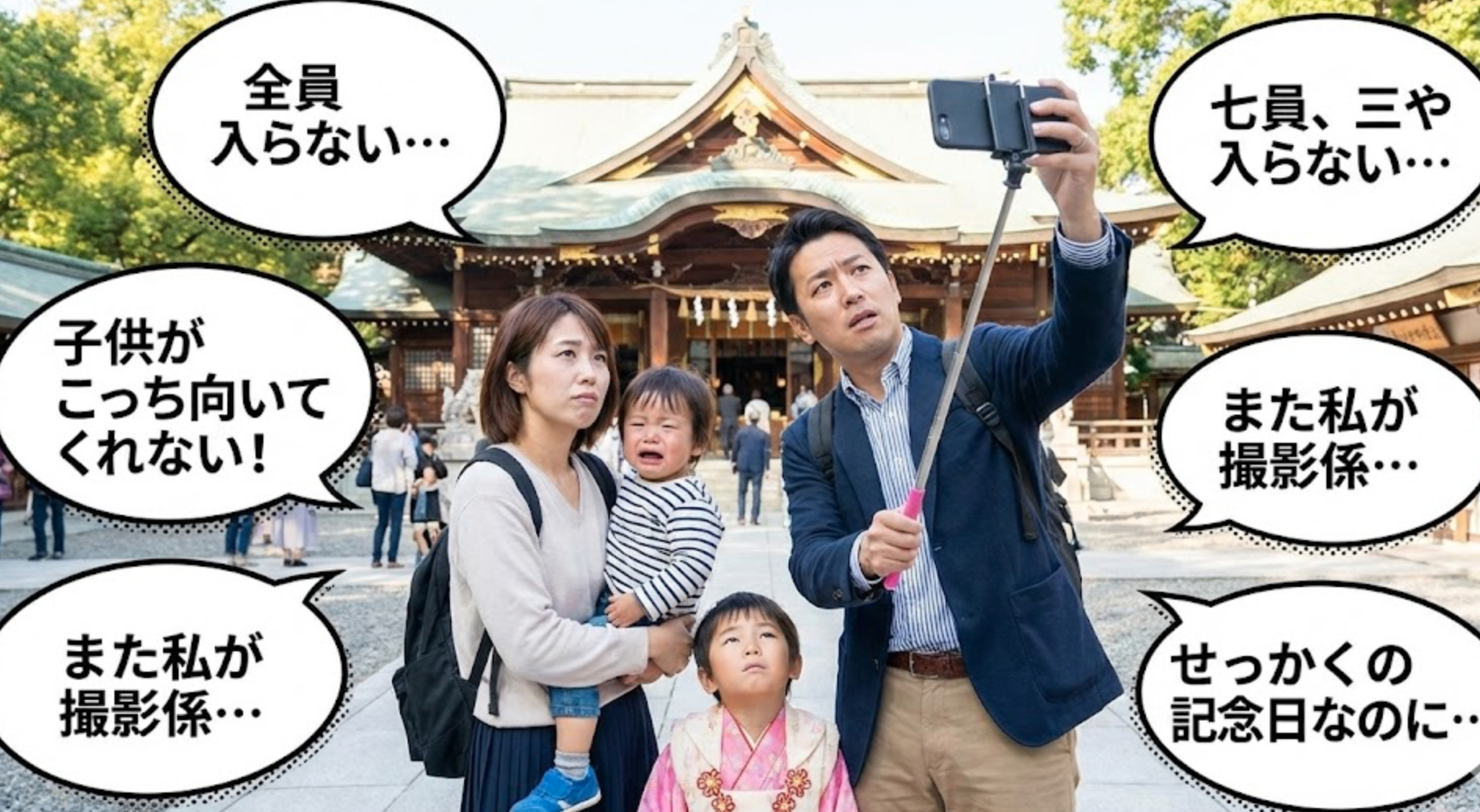 お宮参り、七五三、誕生日、あるいは家族の何気ない記念日。大切な瞬間を記録に残そうとスマートフォンを構えても、結局自分がお母さん・お父さん役で撮影係になり、家族全員が揃った写真が残らない。あるいは、自撮り棒を使って撮ってみたものの、背景がイマイチだったり、子供の表情が硬かったり……。