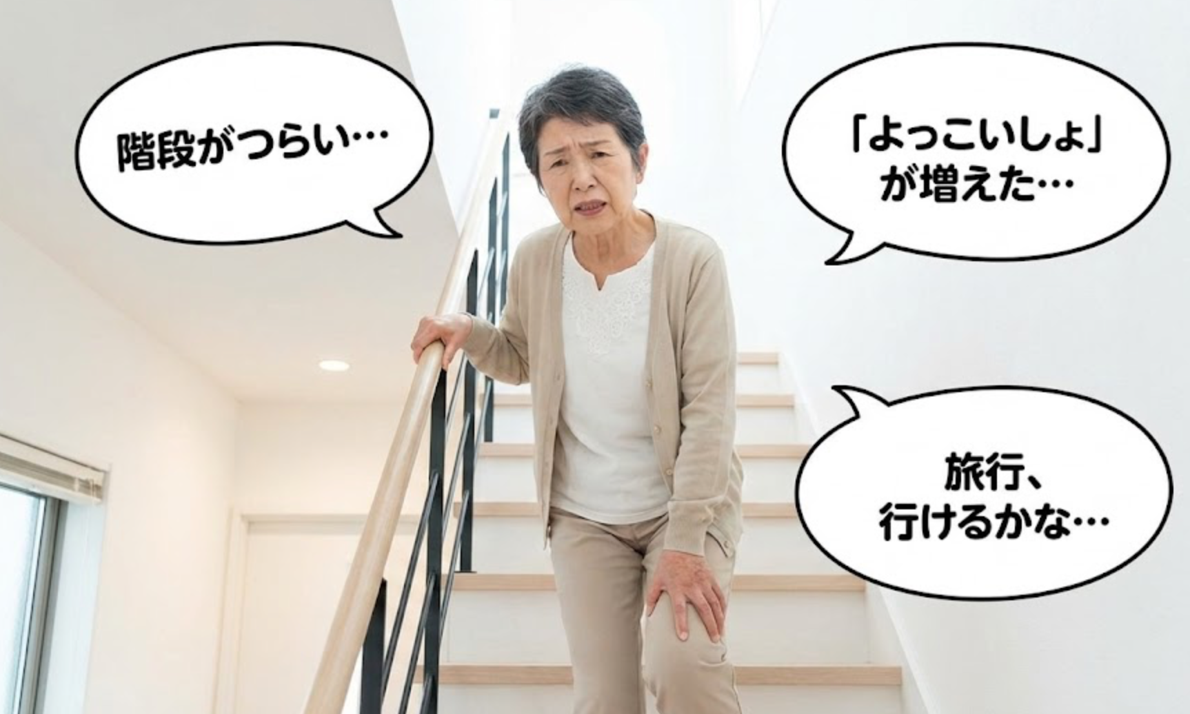 以前はもっと軽やかに歩けていたはずなのに、階段の昇り降りで慎重になったり、椅子から立ち上がる時に思わず「よっこいしょ」と声が出てしまったり。