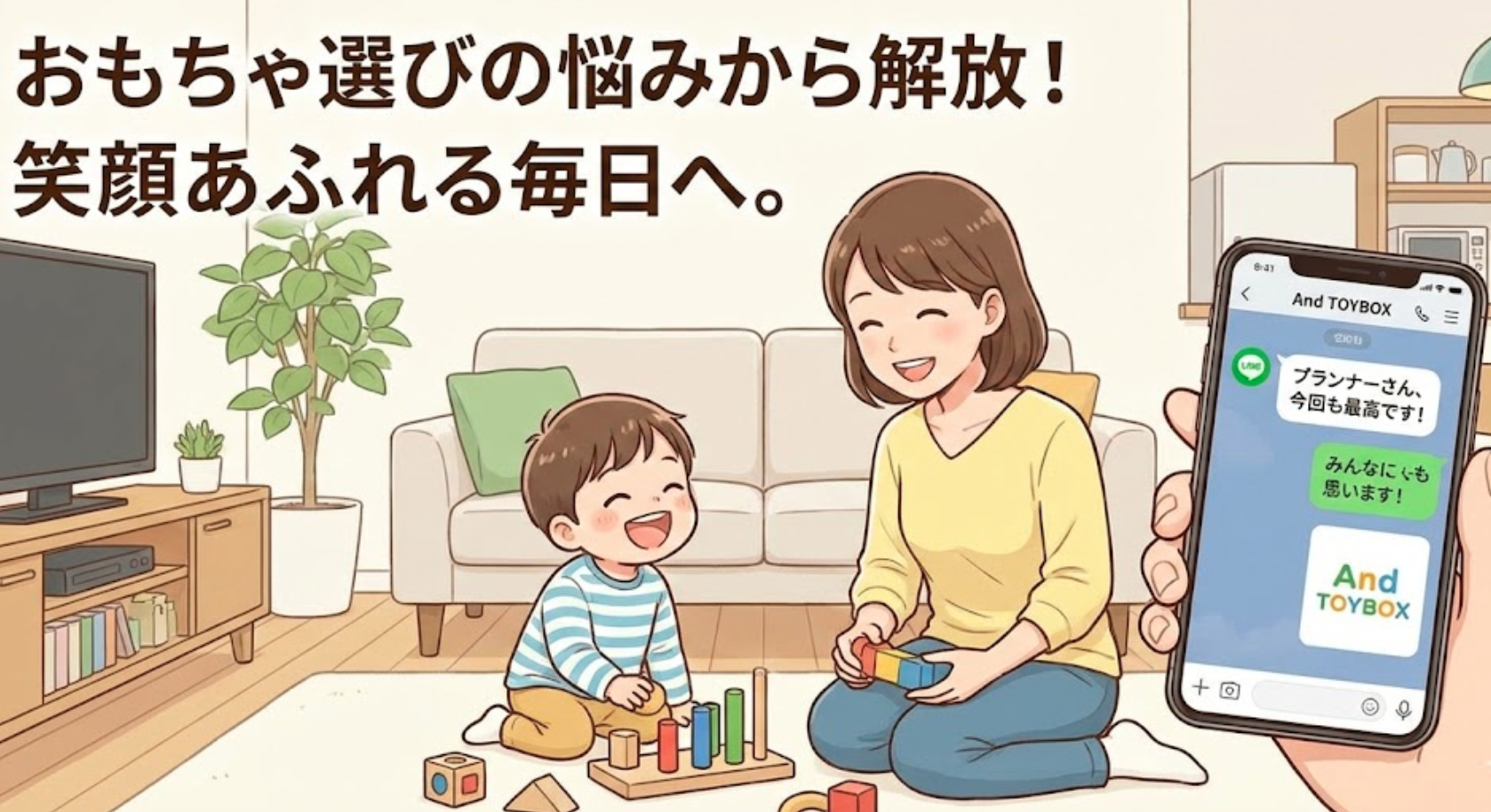「届いたけど遊ばなかったらどうしよう…」というサブスク特有の不安を、事前のLINE相談で極限まで減らせるのがAnd TOYBOXの最大の強みです。